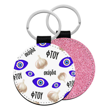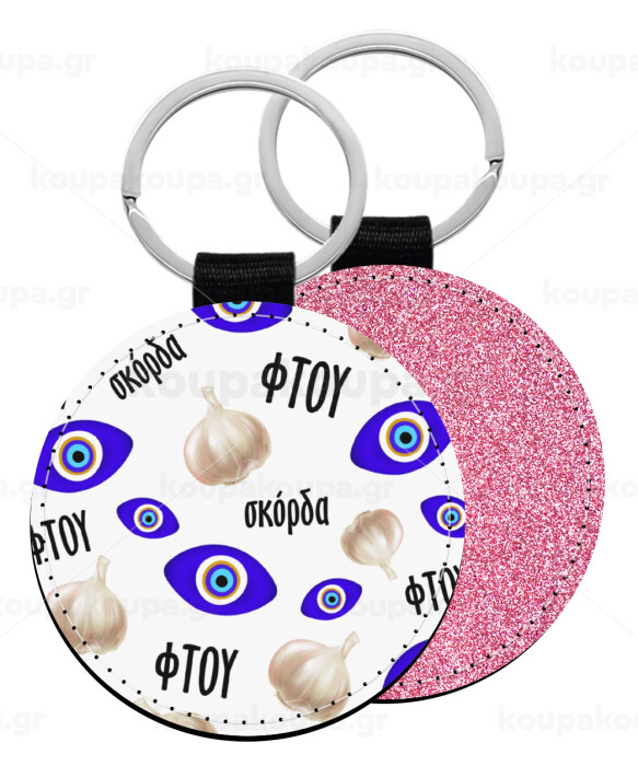 Φτου, φτου, σκόρδα!!!, Μπρελόκ Δερματίνη, στρογγυλό ΡΟΖ (5cm)
