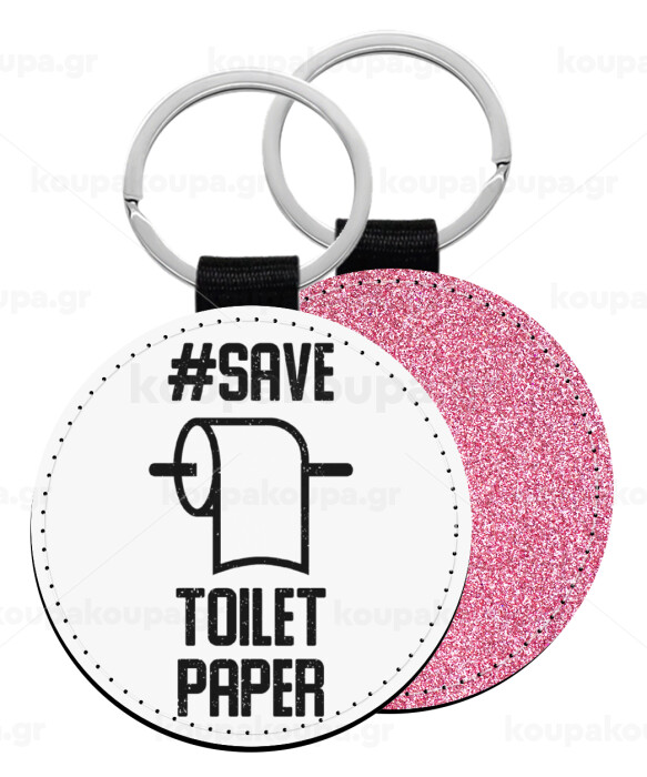 Save toilet Paper, Μπρελόκ Δερματίνη, στρογγυλό ΡΟΖ (5cm)