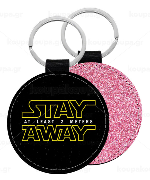 Stay Away, Μπρελόκ Δερματίνη, στρογγυλό ΡΟΖ (5cm)