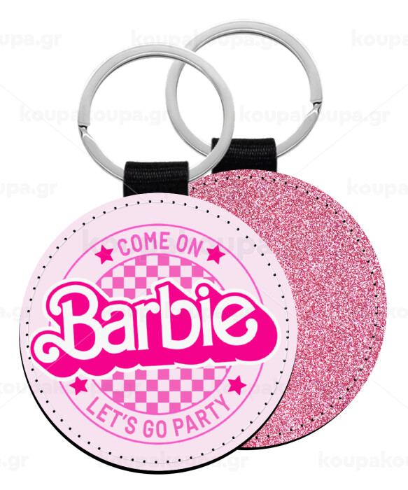 Come On Barbie Lets Go Party , Μπρελόκ Δερματίνη, στρογγυλό ΡΟΖ (5cm)