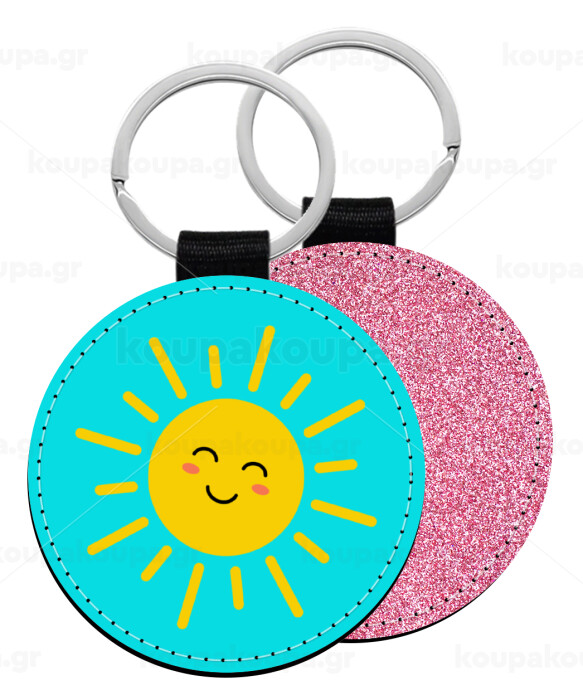 Happy sun, Μπρελόκ Δερματίνη, στρογγυλό ΡΟΖ (5cm)
