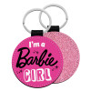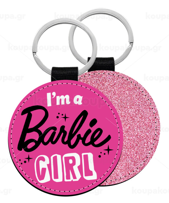 I'm Barbie girl, Μπρελόκ Δερματίνη, στρογγυλό ΡΟΖ (5cm)