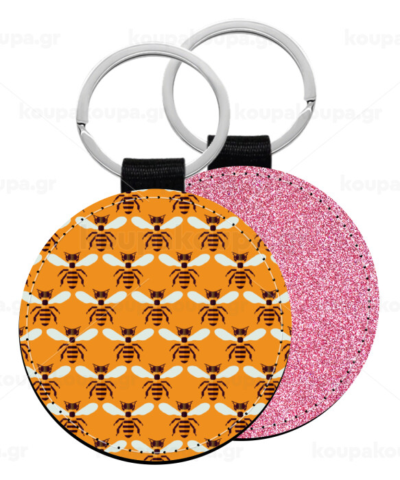 Bee, Μπρελόκ Δερματίνη, στρογγυλό ΡΟΖ (5cm)