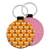 Leatherette keychain with glitter on one side and high resistance leatherette on the other. Safety ring for the keys.