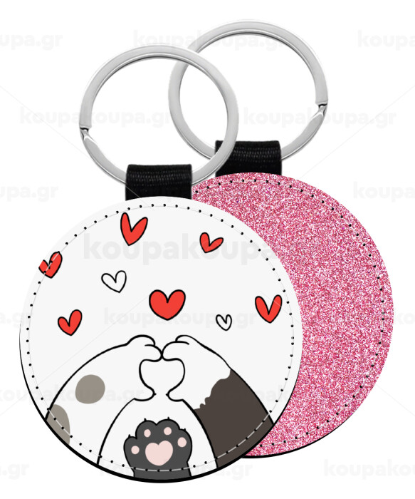 Cat paws, Μπρελόκ Δερματίνη, στρογγυλό ΡΟΖ (5cm)