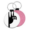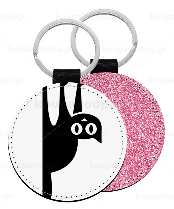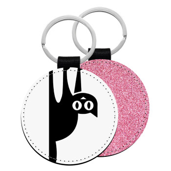 Cat upside down, Μπρελόκ Δερματίνη, στρογγυλό ΡΟΖ (5cm)