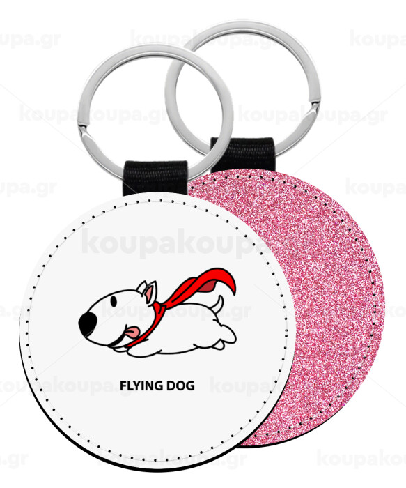 Flying DOG, Μπρελόκ Δερματίνη, στρογγυλό ΡΟΖ (5cm)