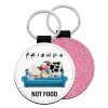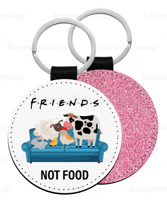 friends, not food, Μπρελόκ Δερματίνη, στρογγυλό ΡΟΖ (5cm)