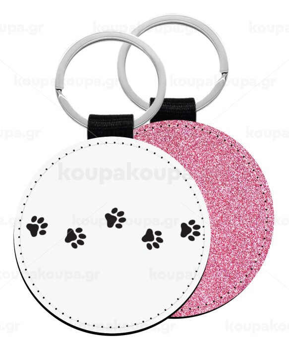 paw, Μπρελόκ Δερματίνη, στρογγυλό ΡΟΖ (5cm)
