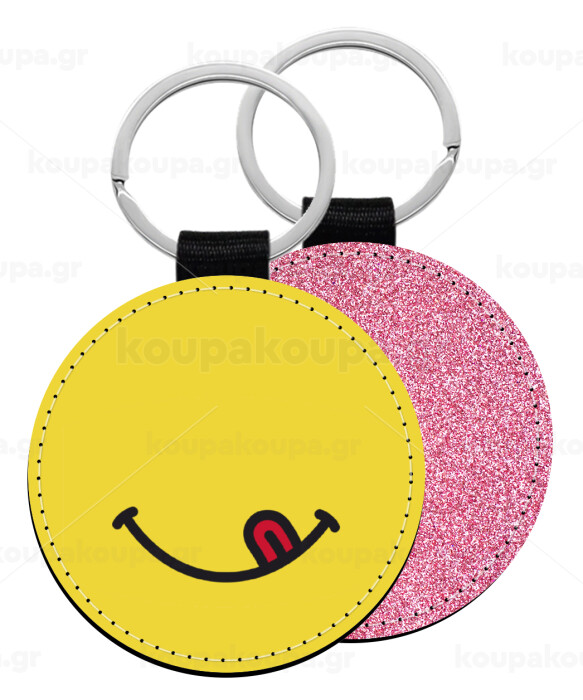 Χαμόγελο , Μπρελόκ Δερματίνη, στρογγυλό ΡΟΖ (5cm)