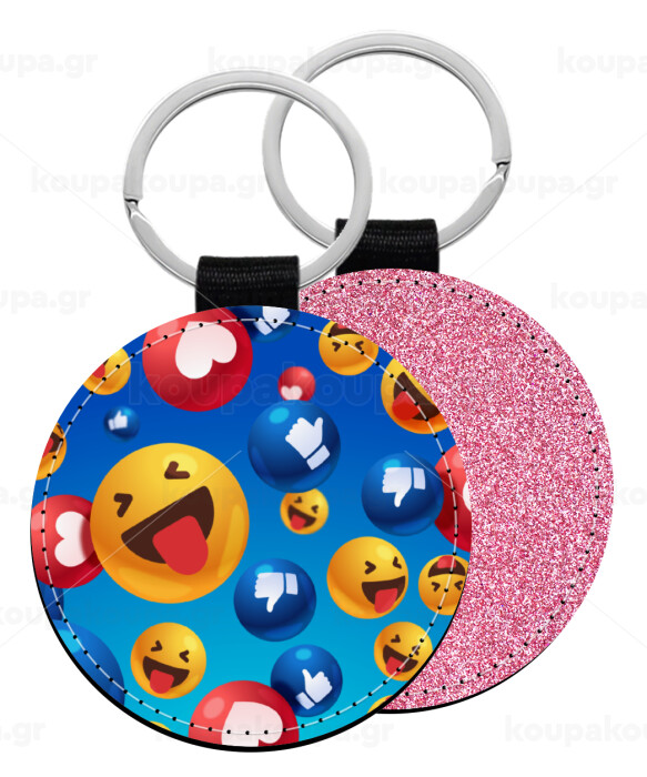3D Emoji Collection, Μπρελόκ Δερματίνη, στρογγυλό ΡΟΖ (5cm)
