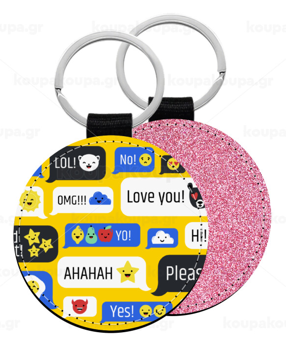 Emoji's text messages, Μπρελόκ Δερματίνη, στρογγυλό ΡΟΖ (5cm)