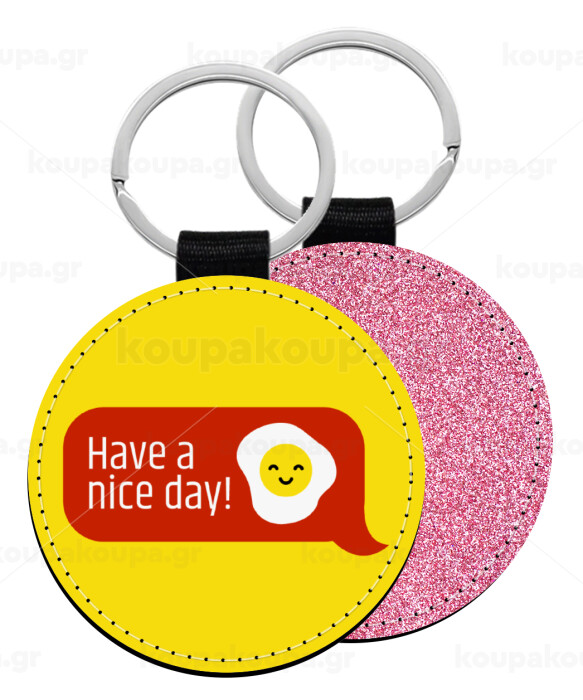 Have a nice day Emoji, Μπρελόκ Δερματίνη, στρογγυλό ΡΟΖ (5cm)