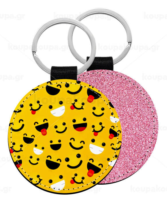 Smilies , Μπρελόκ Δερματίνη, στρογγυλό ΡΟΖ (5cm)