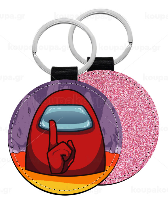 Among US, Μπρελόκ Δερματίνη, στρογγυλό ΡΟΖ (5cm)