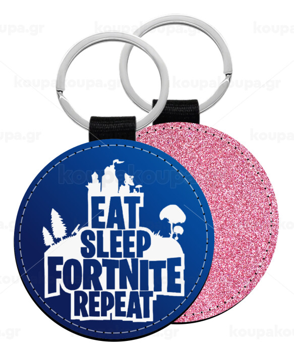 Eat Sleep Fortnite Repeat, Μπρελόκ Δερματίνη, στρογγυλό ΡΟΖ (5cm)