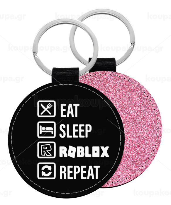 Eat, Sleep, Roblox, Repeat, Μπρελόκ Δερματίνη, στρογγυλό ΡΟΖ (5cm)
