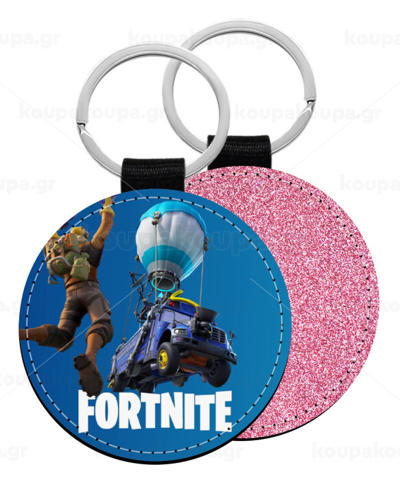 Fortnite Bus, Μπρελόκ Δερματίνη, στρογγυλό ΡΟΖ (5cm)