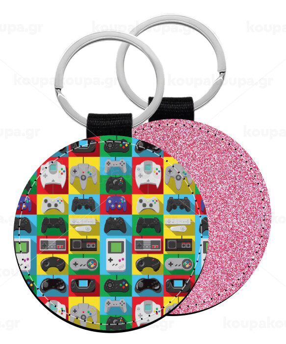 Gaming Controllers, Μπρελόκ Δερματίνη, στρογγυλό ΡΟΖ (5cm)
