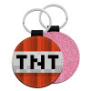 Leatherette keychain with glitter on one side and high resistance leatherette on the other. Safety ring for the keys.