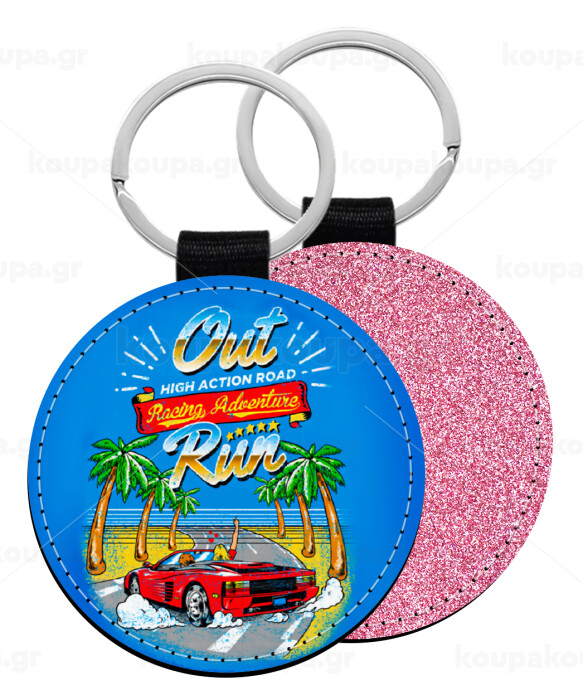 outrun game, Μπρελόκ Δερματίνη, στρογγυλό ΡΟΖ (5cm)