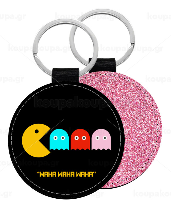 Pacman waka waka waka, Μπρελόκ Δερματίνη, στρογγυλό ΡΟΖ (5cm)