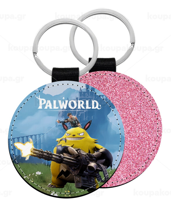 Palworld, Μπρελόκ Δερματίνη, στρογγυλό ΡΟΖ (5cm)