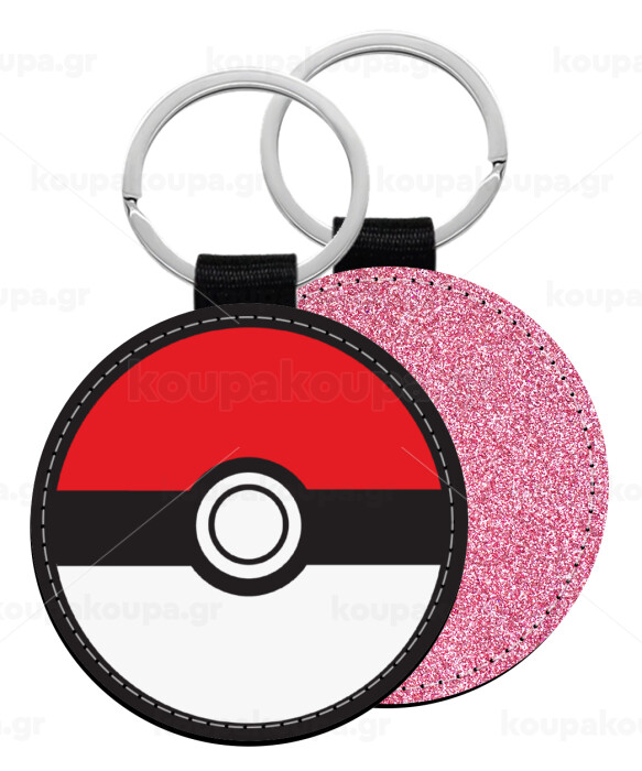 Pokemon ball, Μπρελόκ Δερματίνη, στρογγυλό ΡΟΖ (5cm)