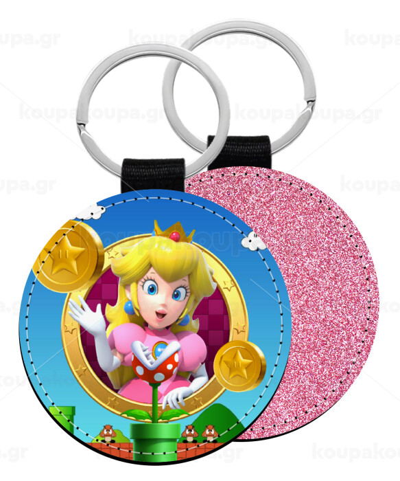 Princess Peach Toadstool, Μπρελόκ Δερματίνη, στρογγυλό ΡΟΖ (5cm)