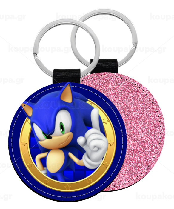 Sonic the hedgehog, Μπρελόκ Δερματίνη, στρογγυλό ΡΟΖ (5cm)
