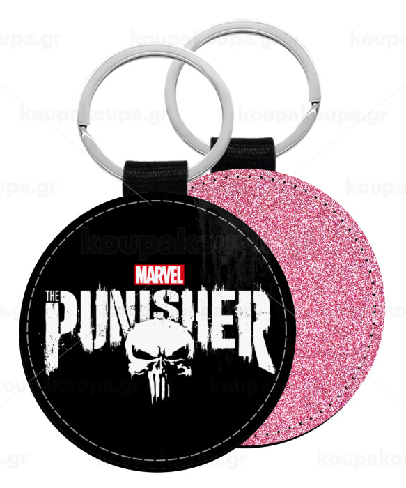 The punisher, Μπρελόκ Δερματίνη, στρογγυλό ΡΟΖ (5cm)