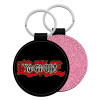 Leatherette keychain with glitter on one side and high resistance leatherette on the other. Safety ring for the keys.