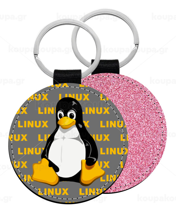 Linux, Μπρελόκ Δερματίνη, στρογγυλό ΡΟΖ (5cm)