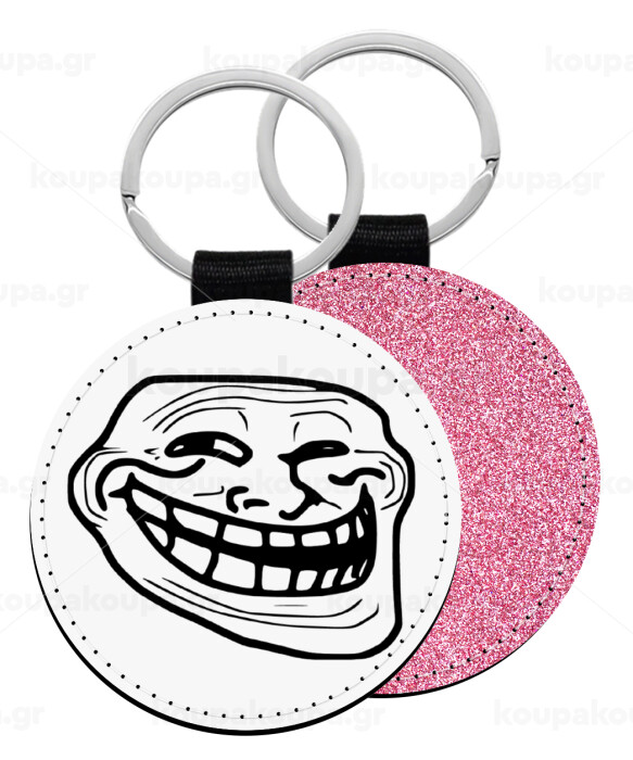 Troll face, Μπρελόκ Δερματίνη, στρογγυλό ΡΟΖ (5cm)