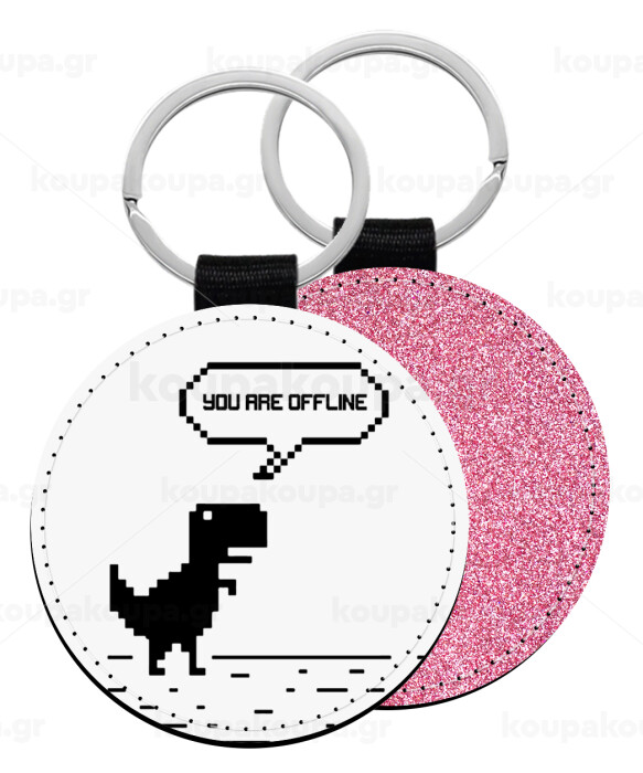 You are offline dinosaur, Μπρελόκ Δερματίνη, στρογγυλό ΡΟΖ (5cm)