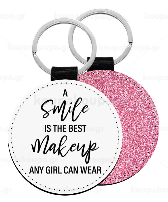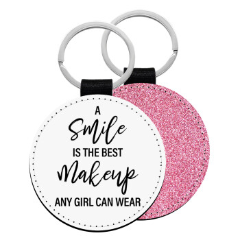 A slime is the best makeup any girl can wear, Μπρελόκ Δερματίνη, στρογγυλό ΡΟΖ (5cm)
