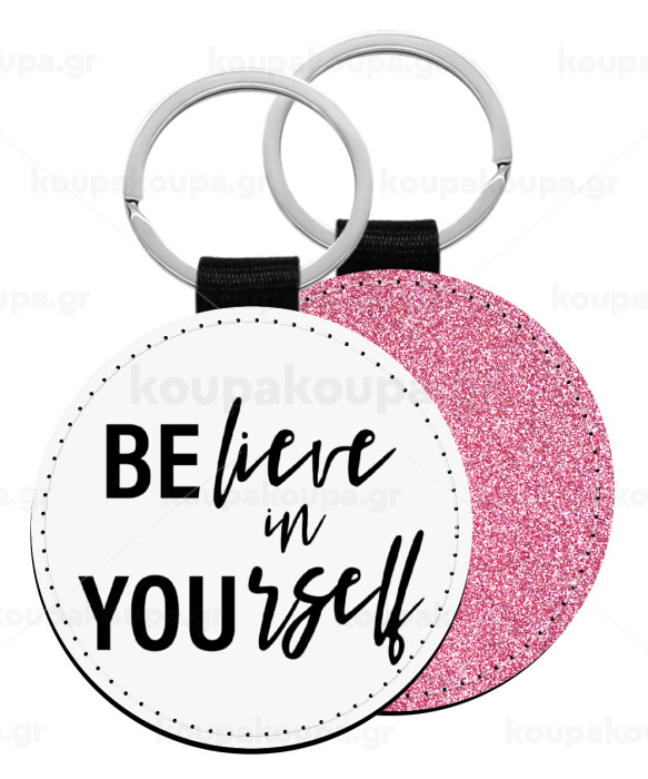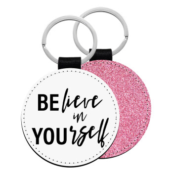 Believe in your self, Μπρελόκ Δερματίνη, στρογγυλό ΡΟΖ (5cm)