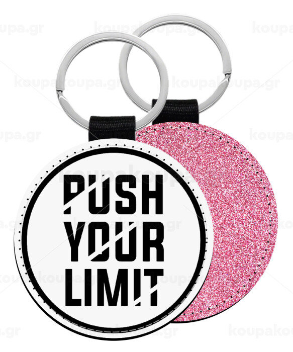 Push your limit, Μπρελόκ Δερματίνη, στρογγυλό ΡΟΖ (5cm)