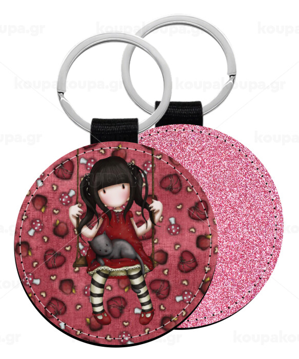 Leatherette keychain with glitter on one side and high resistance leatherette on the other. Safety ring for the keys.