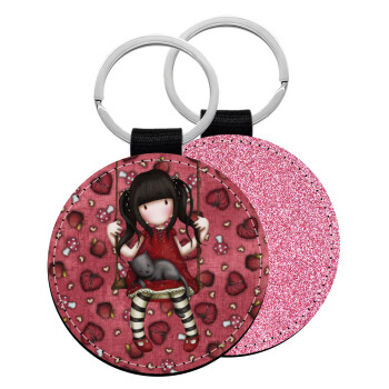 Santoro, Μπρελόκ Δερματίνη, στρογγυλό ΡΟΖ (5cm)