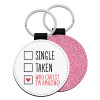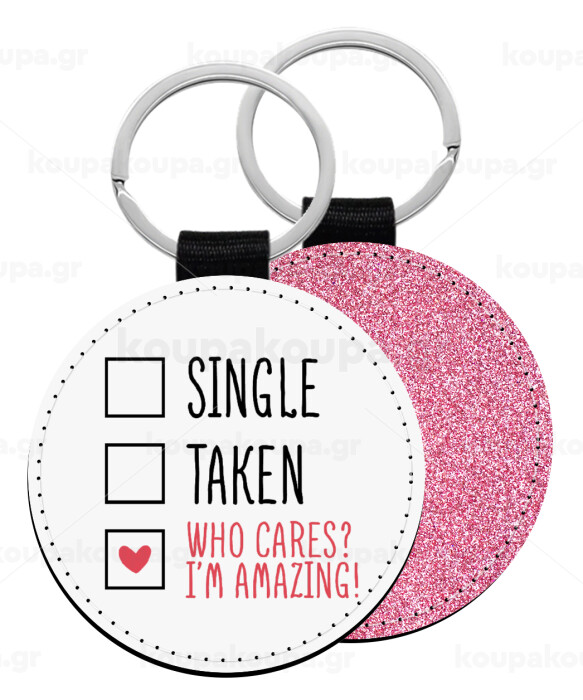 Single, Taken, Who cares i'm amazing, Μπρελόκ Δερματίνη, στρογγυλό ΡΟΖ (5cm)