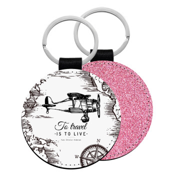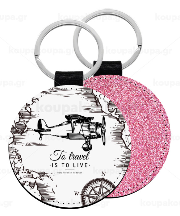 To travel is to live, Μπρελόκ Δερματίνη, στρογγυλό ΡΟΖ (5cm)
