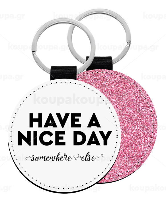 Have a nice day somewhere else, Μπρελόκ Δερματίνη, στρογγυλό ΡΟΖ (5cm)