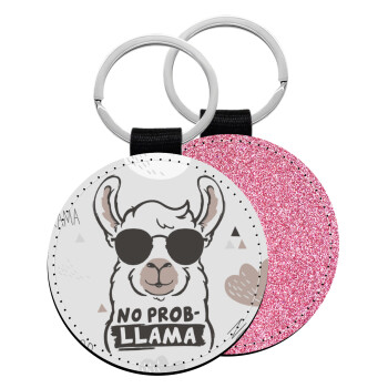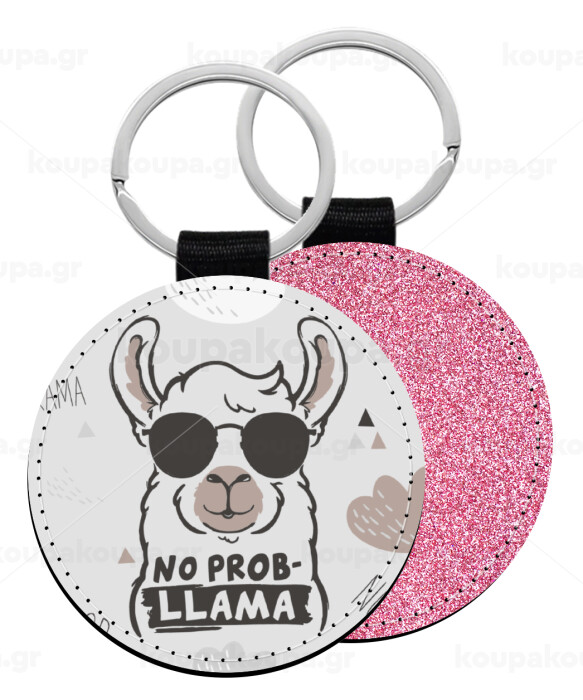 No Prob Llama, Μπρελόκ Δερματίνη, στρογγυλό ΡΟΖ (5cm)