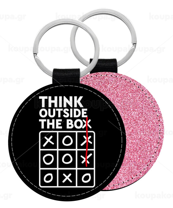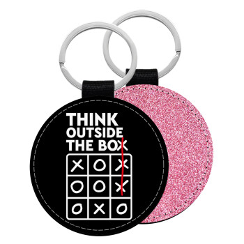 Think outside the BOX, Μπρελόκ Δερματίνη, στρογγυλό ΡΟΖ (5cm)