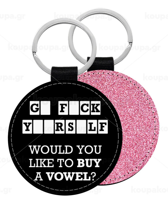 Wheel of fortune, go f..k yourself, Μπρελόκ Δερματίνη, στρογγυλό ΡΟΖ (5cm)