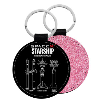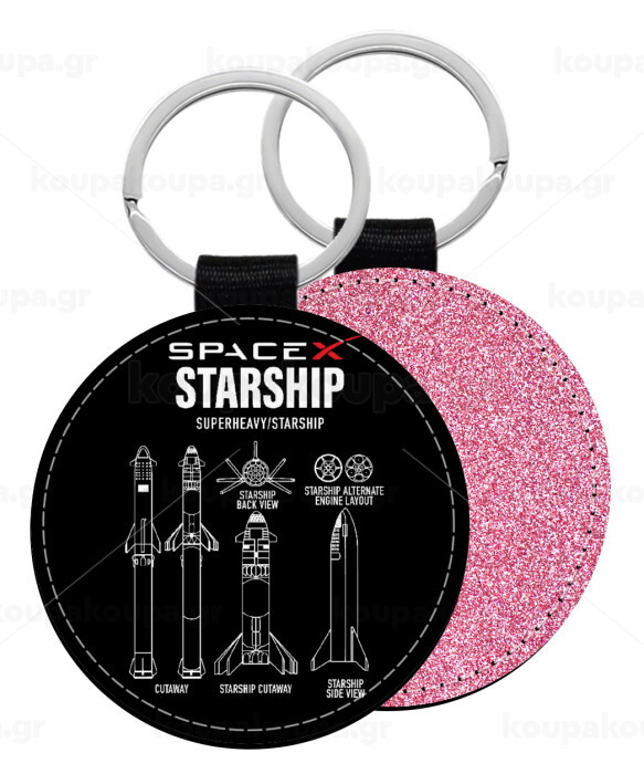 Space X, Μπρελόκ Δερματίνη, στρογγυλό ΡΟΖ (5cm)