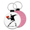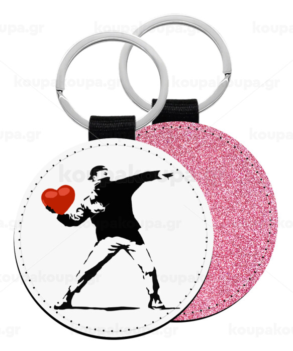 Banksy (The heart thrower), Μπρελόκ Δερματίνη, στρογγυλό ΡΟΖ (5cm)