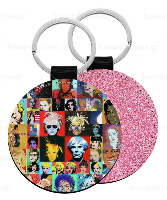Warhol pop art, Μπρελόκ Δερματίνη, στρογγυλό ΡΟΖ (5cm)