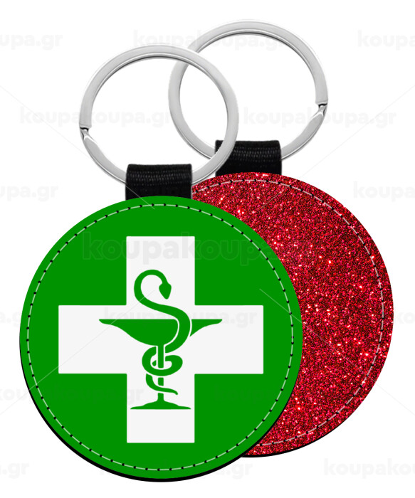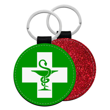 Φαρμακείο, Μπρελόκ Δερματίνη, στρογγυλό ΚΟΚΚΙΝΟ (5cm)